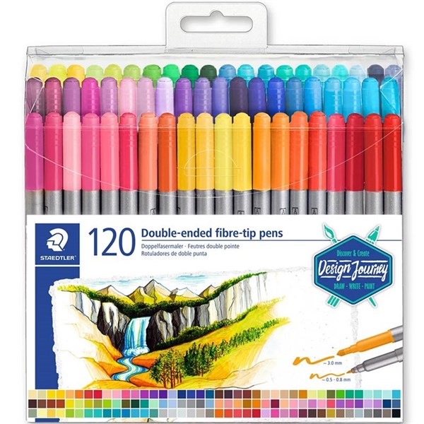 - Wallet containing 120 double-ended fibre-tip pens in assorted colours