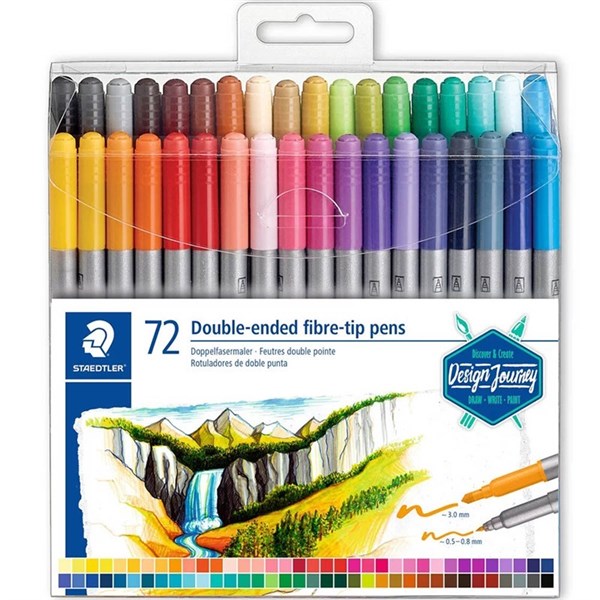 - Wallet containing 72 double-ended fibre-tip pens in assorted colours