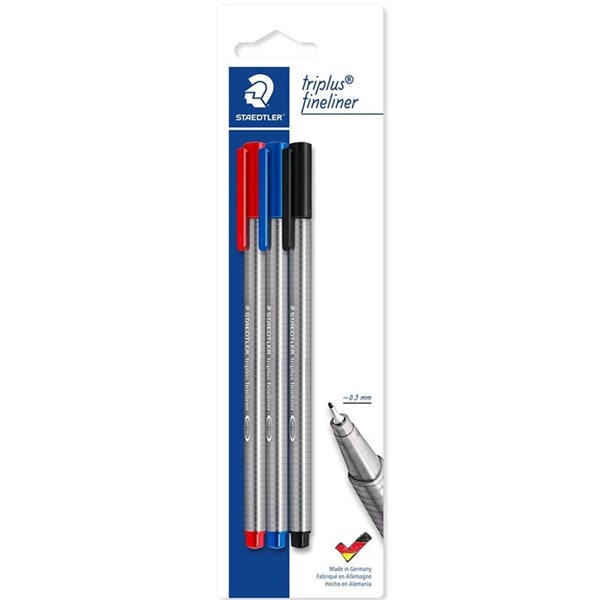 - Blistercard containing 3 triplus fineliner, black, blue, red