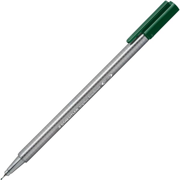 STAEDTLER 334 TRIPLUS FINELINE PEN GREEN EARTH BOX 10
