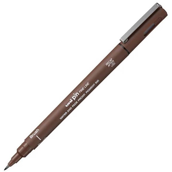 UNI-BALL UNI PIN BRUSH TIP FINELINE 0.1MM SEPIA