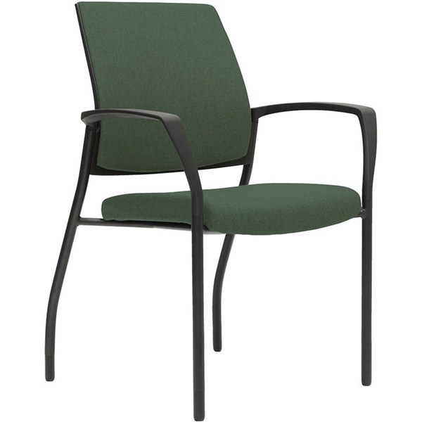 Urbin multi-purpose stackable armchair with upholstered inner and outer back and upholstered padded seat - Fully welded black powdercoat 4 leg steel frame on glides