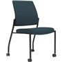 Urbin multi-purpose stackable chair with upholstered inner and outer back and upholstered padded seat - Fully welded black powdercoat 4 leg steel frame on castors