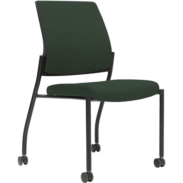 URBIN 4 LEG CHAIR CASTORS BLACK FRAME FOREST SEAT AND INNER BACK