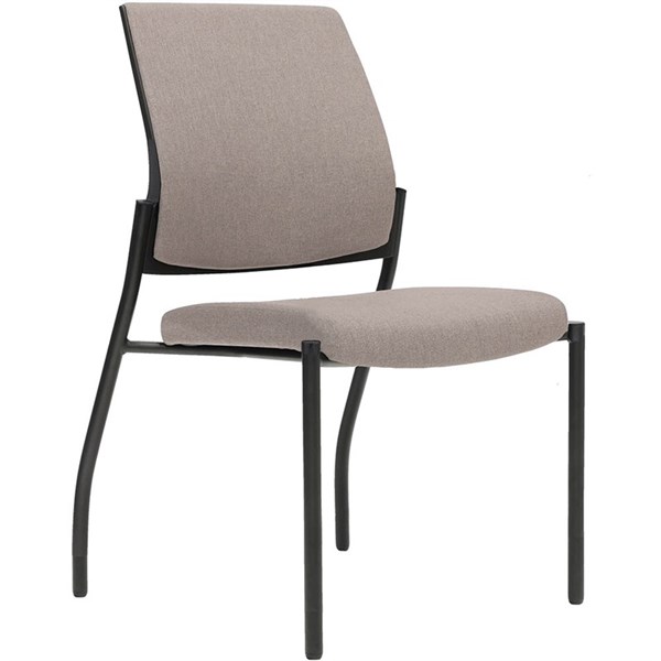 Urbin multi-purpose stackable chair with upholstered inner and outer back and upholstered padded seat - Fully welded black powdercoat 4 leg steel frame on glides