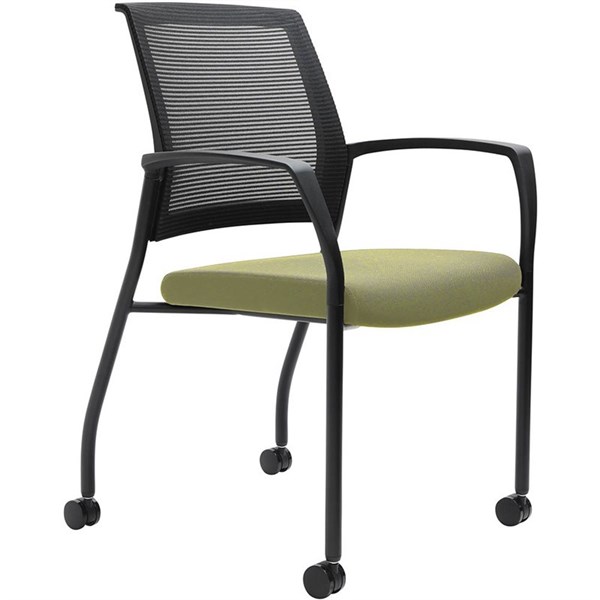 URBIN 4 LEG MESH BACK ARMCHAIR CASTORS BLACK FRAME APPLE SEAT