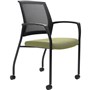 Urbin multi-purpose stackable armchair with mesh back and upholstered padded seat - Fully welded black powdercoat 4 leg steel frame on castors
