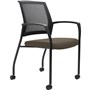 Urbin multi-purpose stackable armchair with mesh back and upholstered padded seat - Fully welded black powdercoat 4 leg steel frame on castors