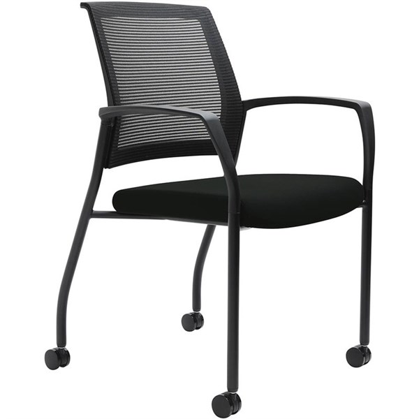 URBIN 4 LEG MESH BACK ARMCHAIR CASTORS BLACK FRAME ONYX SEAT