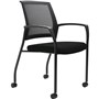 Urbin multi-purpose stackable armchair with mesh back and upholstered padded seat - Fully welded black powdercoat 4 leg steel frame on castors