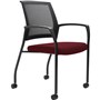 Urbin multi-purpose stackable armchair with mesh back and upholstered padded seat - Fully welded black powdercoat 4 leg steel frame on castors