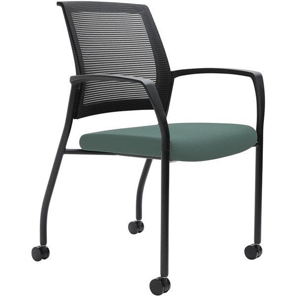 URBIN 4 LEG MESH BACK ARMCHAIR CASTORS BLACK FRAME TEAL SEAT