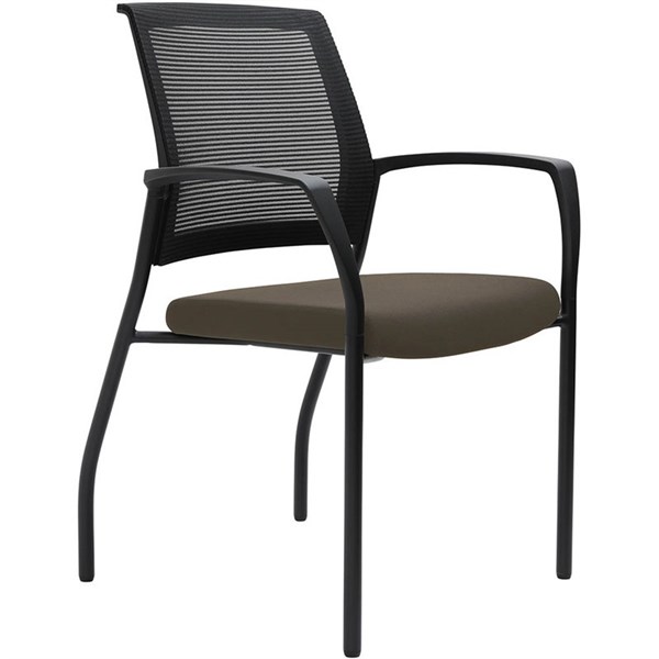 URBIN 4 LEG MESH BACK ARMCHAIR GLIDES BLACK FRAME CHOCOLATE SEAT