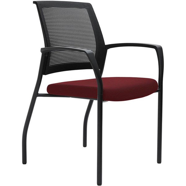 URBIN 4 LEG MESH BACK ARMCHAIR GLIDES BLACK FRAME SCARLET SEAT