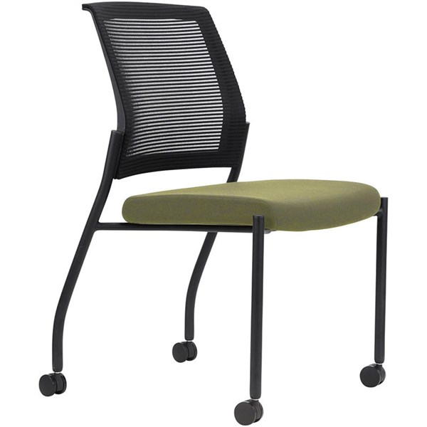 URBIN 4 LEG MESH BACK CHAIR CASTORS BLACK FRAME APPLE SEAT