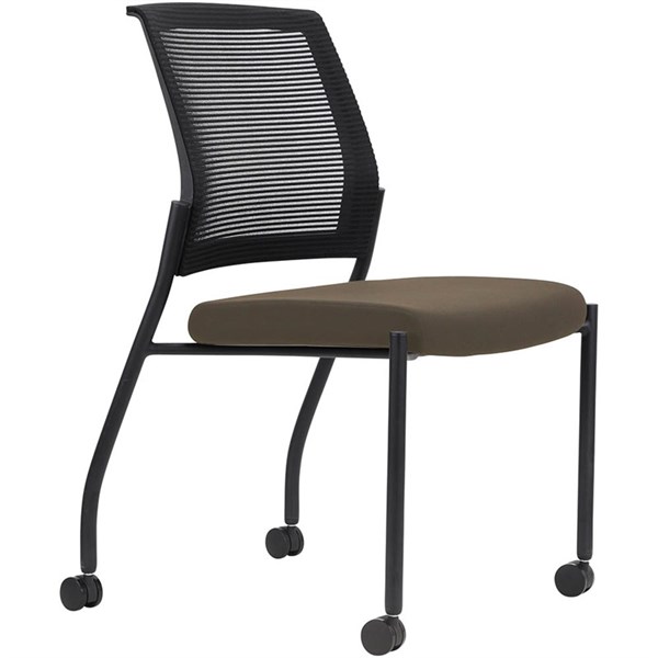 URBIN 4 LEG MESH BACK CHAIR CASTORS BLACK FRAME CHOCOLATE SEAT