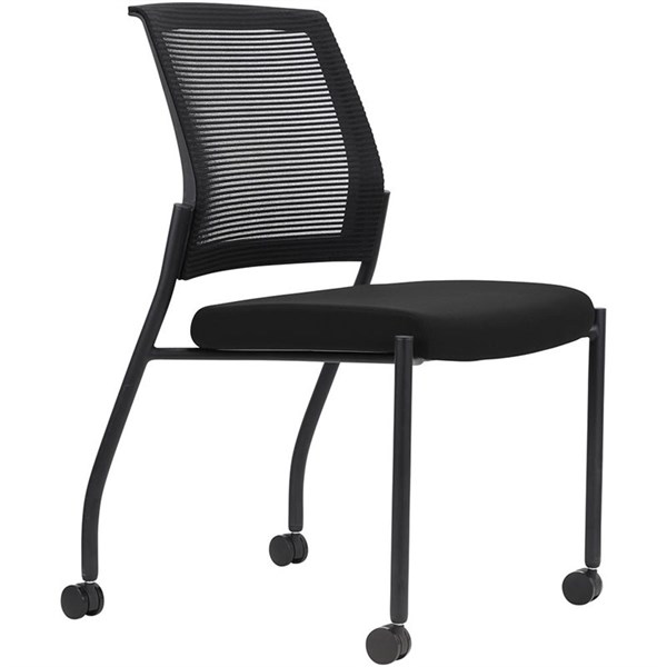 URBIN 4 LEG MESH BACK CHAIR CASTORS BLACK FRAME ONYX SEAT