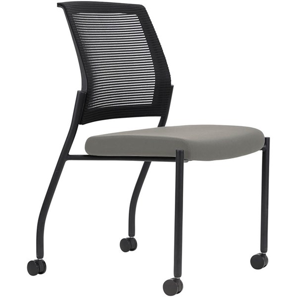 Urbin multi-purpose stackable chair with mesh back and upholstered padded seat - Fully welded black powdercoat 4 leg steel frame on castors
