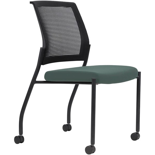 URBIN 4 LEG MESH BACK CHAIR CASTORS BLACK FRAME TEAL SEAT