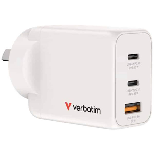 VERBATIM GAN WALL CHARGER 3 PORT 65W WHITE