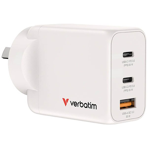 VERBATIM USB GAN CHARGER 3 PORT 65W USB A/C WHITE