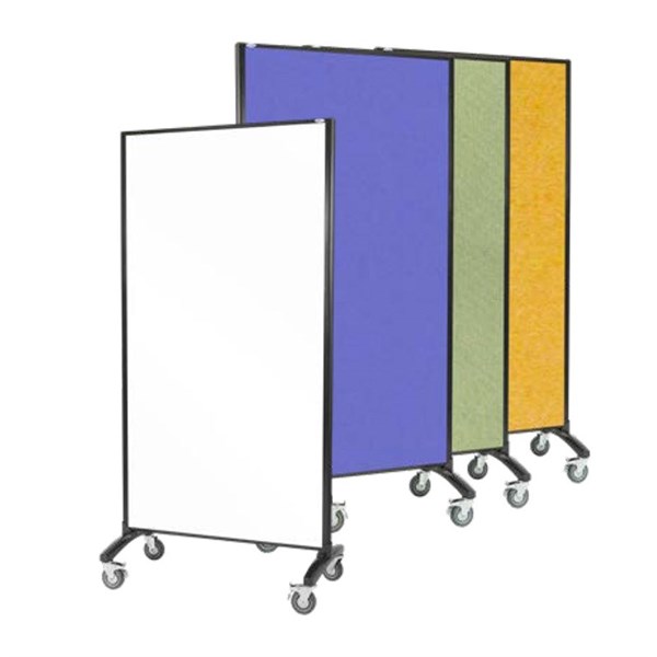 The ultimate room divider that can be used as whiteboard or pinboard, or both - The Communicate room divder is magnetic whiteboard surface one side, the reverese side is a velour pinboard surface, able to used with both pins and Velcro