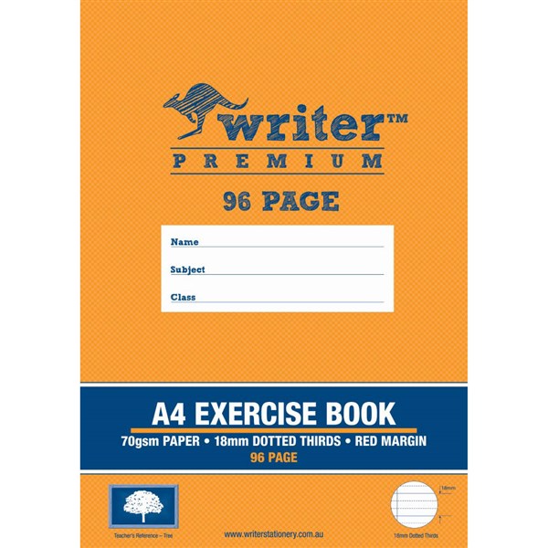 WRITER PREMIUM EXERCISE BOOK DOTTED THIRDS 18MM 70GSM 96 PAGE A4 TREE